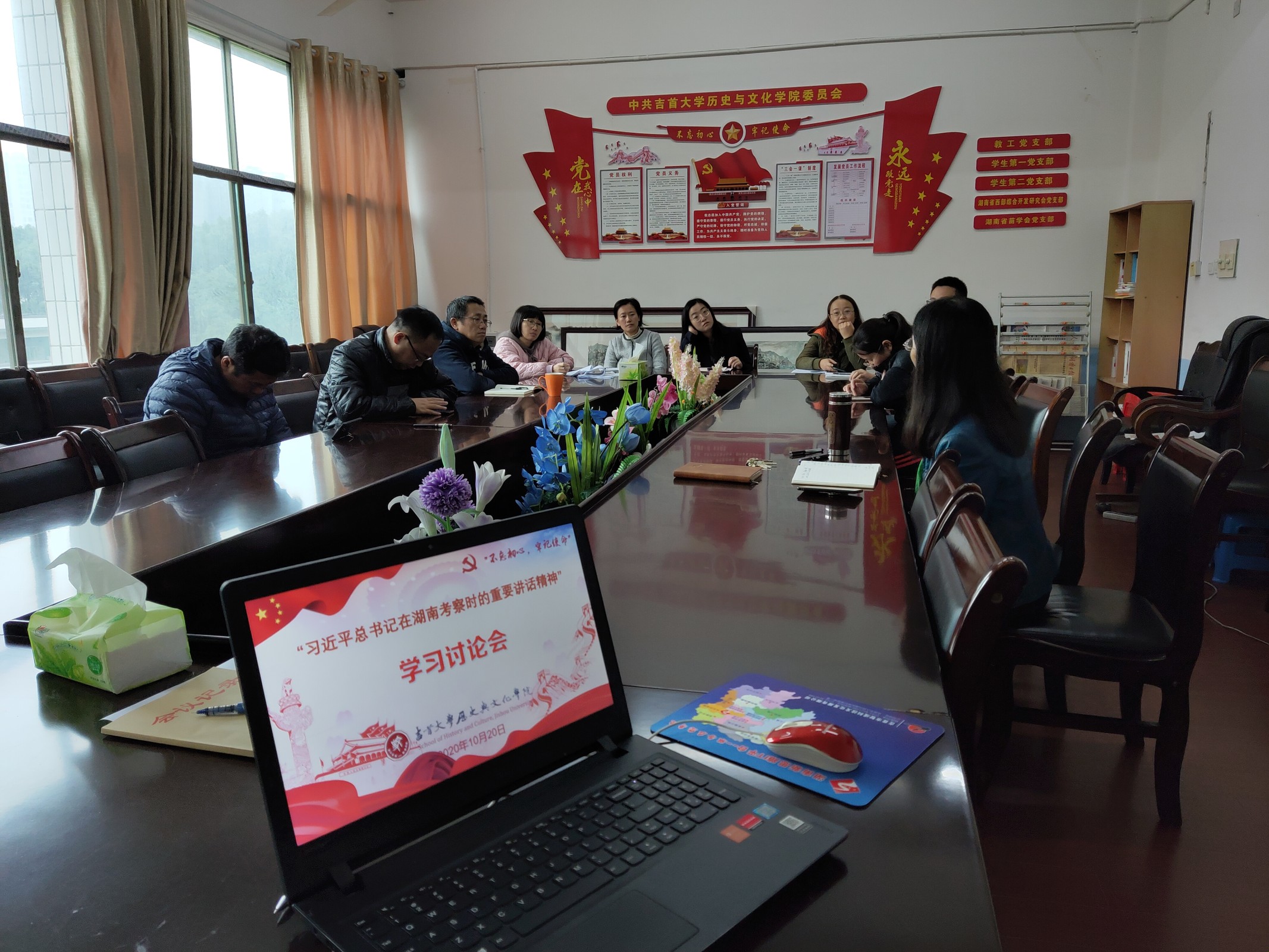 组织员吴恒忠老师受公司党委委托,为全体教工党员从四个方面介绍了习近平总书记在湖南考察期间的重要讲话。他首先带领大家回顾了9月16日至18日,习近平总书记在湖南省委书记杜家毫、省长许达哲的陪同下在湖南考察的基本情况;接着,他介绍了湖南省召开第十届委员会第十一次全体会议的情况及会议上通过的《中共湖南省委关于深入学习贯彻习近平总书记考察湖南重要讲话精神奋力谱写新时代坚持和发展中国特色社会主义湖南新篇章的决定》主要内容;随后,他又详细讲解了习近平主席在湖南考察时讲话的主要精神,即:落实党中央决策部署,坚持稳中求进工作总基调,贯彻新发展理念,坚持以供给侧结构性改革为主线,决胜全面建成小康社会、决战脱贫攻坚,扎实做好“六稳”工作,全面落实“六保”任务,着力打造国家重要先进制造业、具有核心竞争力的科技创新、内陆地区改革开放的高地,在推动高质量发展上闯出新路子,在构建新发展格局中展现新作为,在推动中部地区崛起和长江经济带发展中彰显新担当,奋力谱写新时代坚持和发展中国特色社会主义的湖南新篇章。