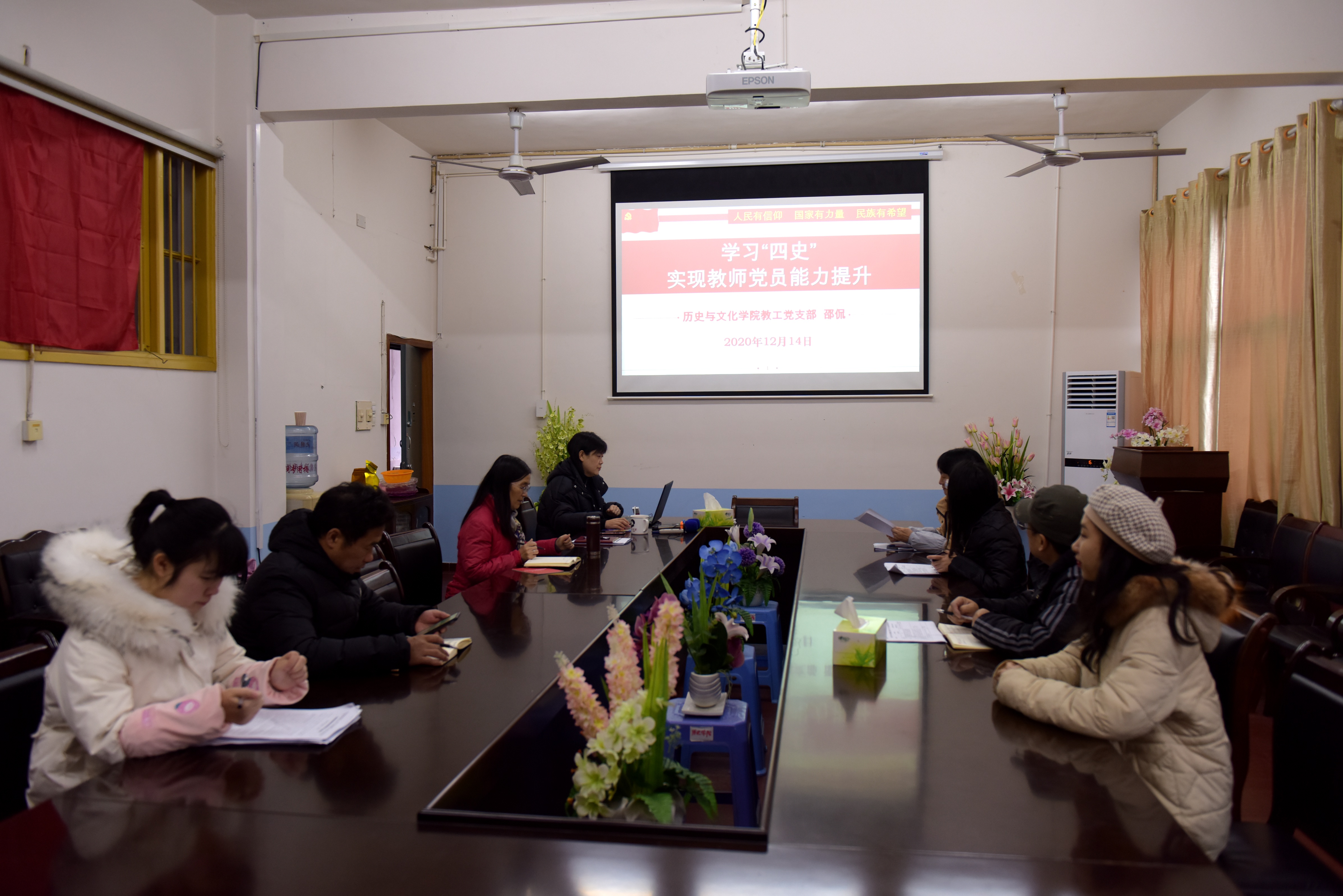 (通讯员 吕永锋)2020年12月14日,历史与文化公司教工党支部书记党课在党员活动室开展,党课由教工支部书记邵侃同志主讲,讲题为“学习“四史”实现教师党员能力提升”。邵侃同志以习近平总书记于 2013年3月1日,在中央党校建校80周年庆祝大会暨2013年春季学期开学典礼上的讲话引入,为各位党员讲解了习近平总书记号召广大党员学习“四史”的重要意义,并分别对于党史,新中国史,改革开放史,社会主义发展史等四史的丰富内涵和理论史料做了充分的说明。还介绍了习近平总书记讲解《共产党宣言》的理论学习。