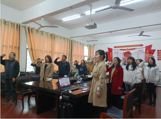 员工党支部全体党员重温入党誓词