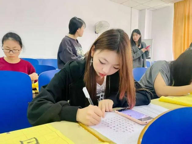 4月12日上午,三笔字书写技能大赛在砂子坳校区第六教学楼60322教室进行。三笔字比赛涵盖硬笔、软笔、粉笔书写,参赛者需全部参加三项比赛并现场书写。当工作人员统一发放书写用纸后,选手们都屏气凝神,从容地书写,尽展书韵之美。参赛选手们在比赛中充分展现了青春的活力与理想,彰显了文化底蕴与师道传承。比赛结束后,选手们交上作品有序离场。